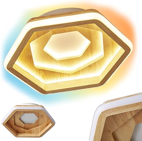 led deckenleuchte holz i 3 etage irregulares design lampe i modern stufenloses dimmbar deckenlampe i ring deko acryl schirm i geolt eiche i wohnzimmerlampe i schlafzimmerleuchte i 35 watt i 3250 lumen