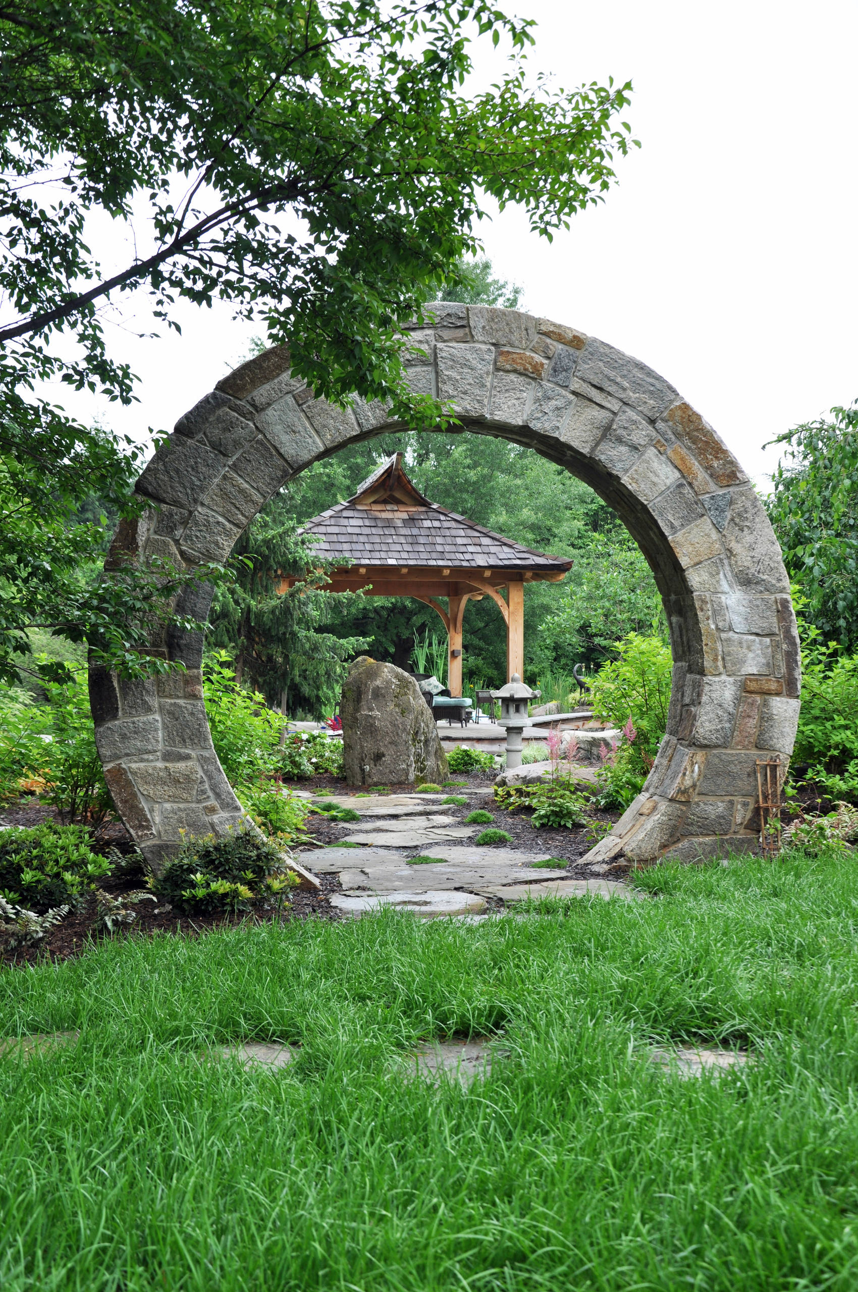 kreisrund und asiatisch gartengestaltung mit mondtoren