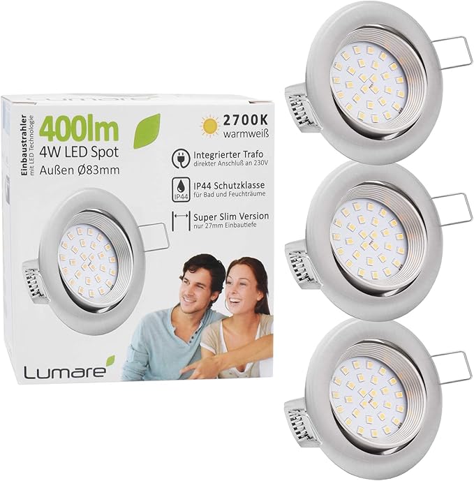 badezimmer einbauleuchten silber rund 68mm einbauo mini slim spot warmweiss 3x lumare led einbaustrahler 4w 400lm 230v ip44 ultra flach wohnzimmer elektroinstallation gewerbe industrie wissenschaft suenaacampo com