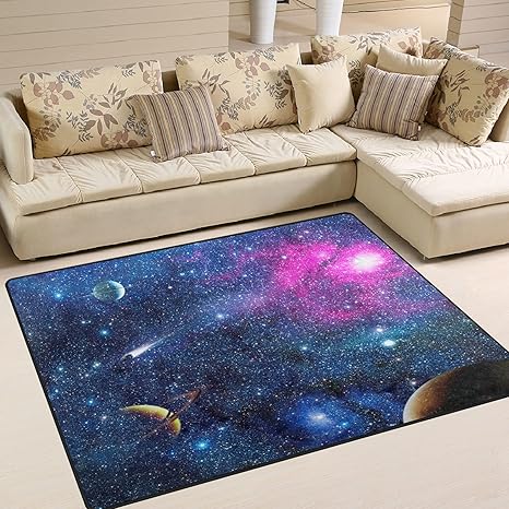 amazon de bereich teppich galaxy universe planeten print teppich designer super soft polyester grosse rutschfeste modern bad teppiche fur schlafzimmer wohnzimmer hall abendessen tisch home decor 121 9