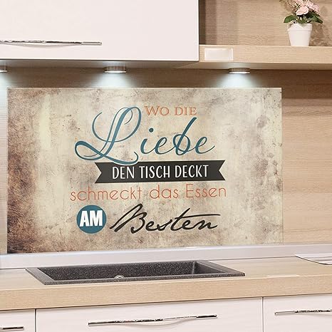 grazdesign ruckwand kuche grau kuchen spritzschutz herd spruch nischenruckwand kuche liebe den tisch deckt kuchenruckwand glas braun 80x50cm amazon de elektro grossgerate