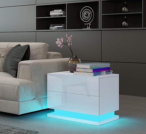 undranded universal sofa tische wohnzimmer hochglanz front mit 2 schubladen rgb led streifen beistelltische 50 x 35 x 43cm weiss amazon de kuche haushalt wohnen