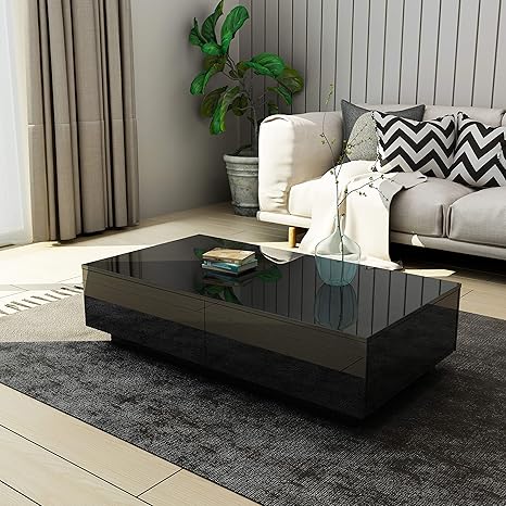 undranded moderner couchtisch hochglanz mit 4 schubladen sofatisch beistelltisch fur wohnzimmer 95 x 60 x 31cm schwarz amazon de kuche haushalt wohnen