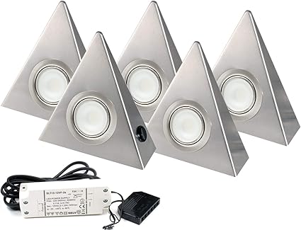 5er set led dreieckleuchte unterbauleuchte kuchenleuchte edelstahl 2 7w warmweiss mit zentralschalter amazon de beleuchtung