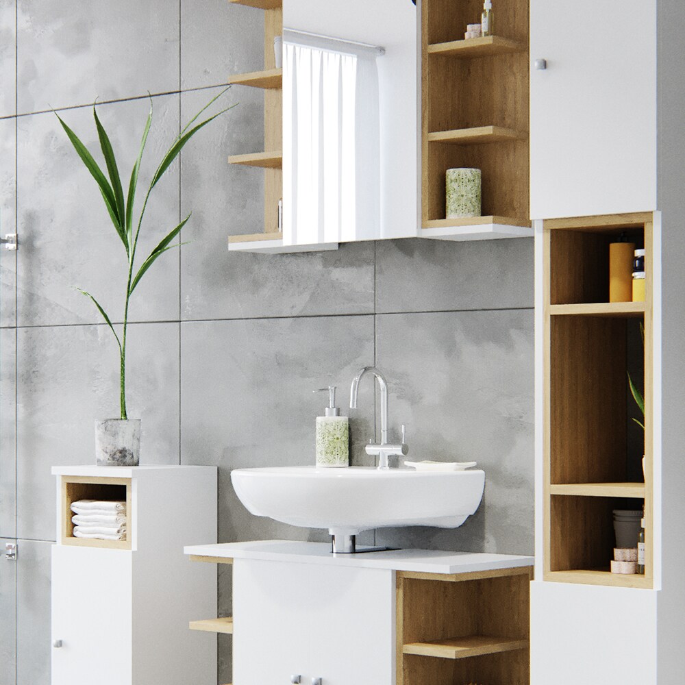 vicco badmobel set aquis weiss eiche spiegel waschtisch unterschrank badezimmer online kaufen bei netto