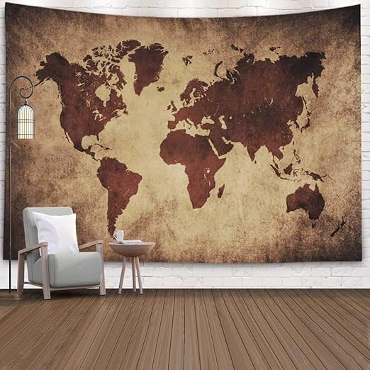 amazon de capsceoll wandteppich weltkarte wandteppich weltkarte schwarz kinderkarte wandteppich wandteppich weltkarte wandbehang wanddekoration 152 4 x 152 4 cm braun schwarz