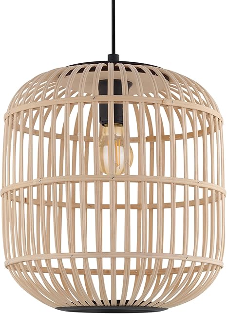 eglo pendelleuchte bordesley 1 flammige hangelampe vintage natur boho hygge hangeleuchte stahl in schwarz und holz in naturfarben esstischlampe wohnzimmerlampe hangend mit e27 fassung o 35 cm amazon de kuche haushalt wohnen