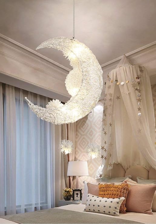 kreative mond und sterne fee led pendelleuchte kronleuchter deckenleuchte kinder kinder schlafzimmer dekoration warmes licht amazon de beleuchtung