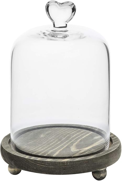 amazon de mygift glasglocke mit herzgriff und grauem holzsockel