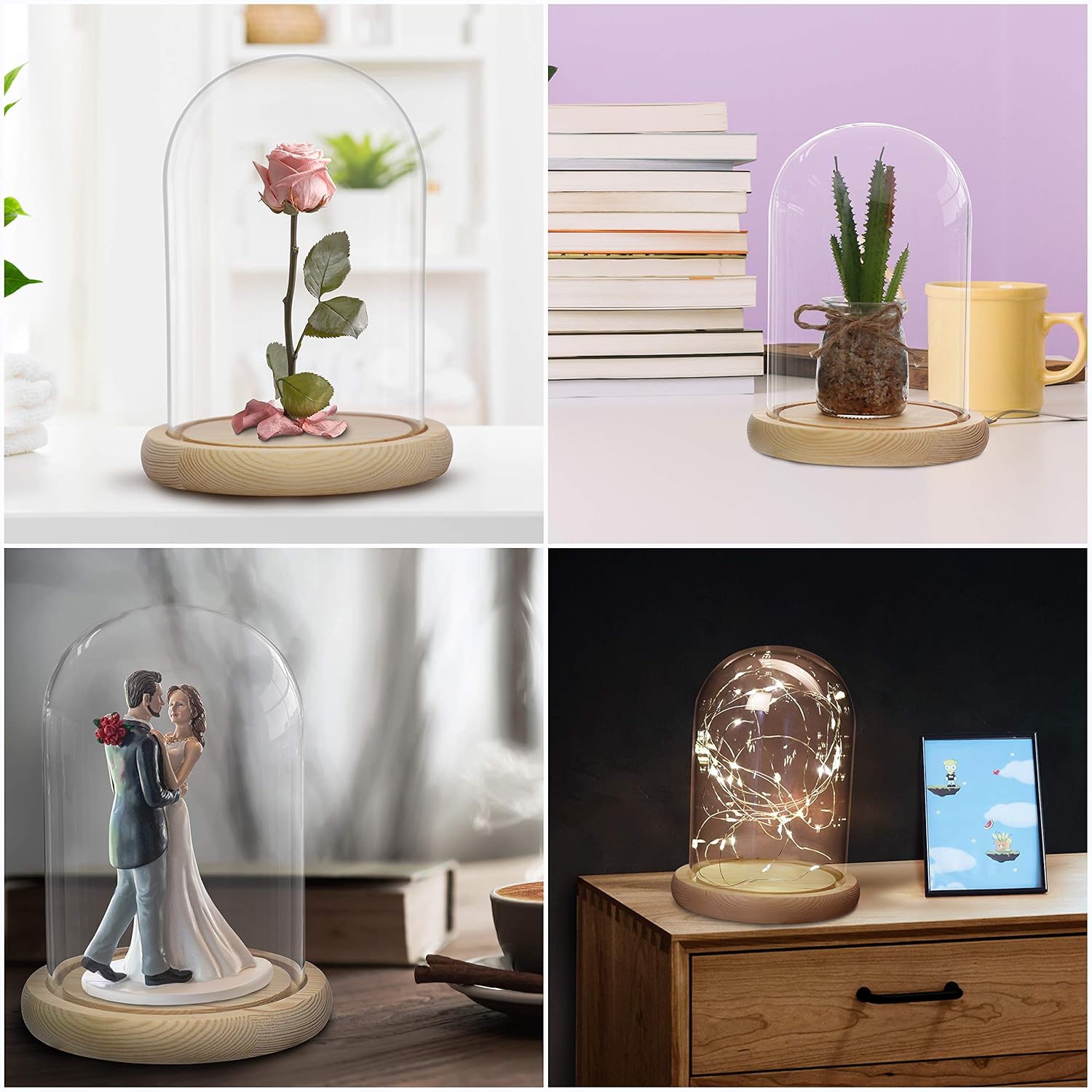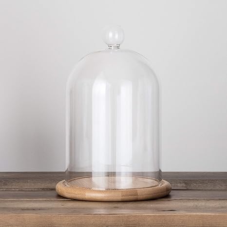 wohnaccessoire belle vous glas glocke glaskuppel gross mit holzboden deko glas kuppel transparent glasglocke glass dome cloche mit boden fur lichter deko 20cm dekorative glashaube als tischdeko basteln malen handarbeiten kuche