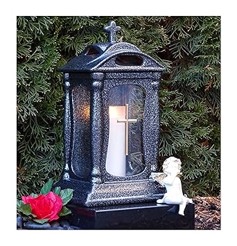design grablampe glas mit kreuz incl grabkerze 22 0cm grabschmuck grablaterne grableuchte laterne garten friedhof
