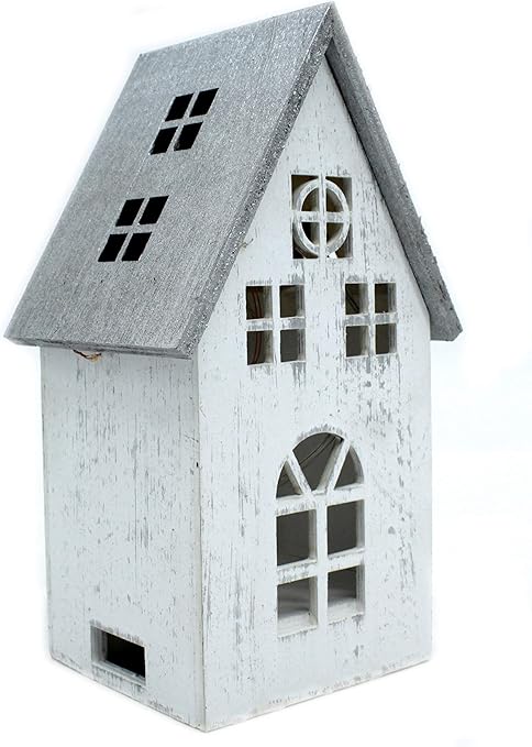 daro deko holz led haus weiss silber 12 x 21cm amazon de beleuchtung