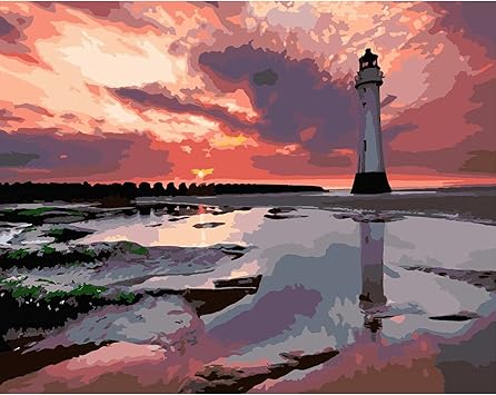 malen nach zahlen erwachsene leuchtturm sonnenuntergang ansicht diy handgemalt olgemalde kits auf leinwand geschenk fur frauen mama tochter weihnachten geburtstag home haus deko 40 50 cm amazon de spielzeug