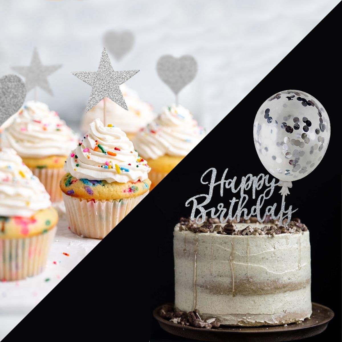 humairc tortendeko silber geburstagstorte deko happy birthday konfetti luftballon herze sternen cake topper kuchen aufsatze