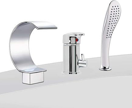 melko wannenrandarmatur 3loch badewannenarmatur chrom wannenrandarmatur armatur set mit wasserhahn einhebelmischer duschkopf und wasserfall einlauf amazon de baumarkt