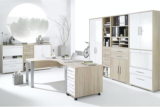 arbeitszimmer komplett set maja system buromobel in eiche sonoma weiss hochglanz amazon de kuche haushalt wohnen