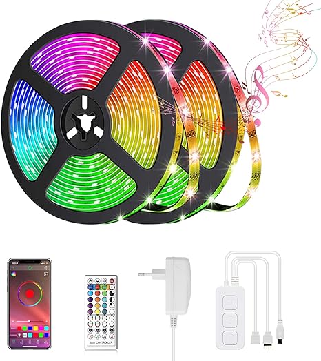led strip led streifen 10m led lichterkette bluetooth led band rgb mit farbwechselnde bandbeleuchtung mit fernbedienung fur wohnzimmer kuche schlafzimmer decke schrank vitrine und mehr amazon de beleuchtung