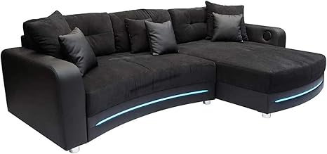 lifestyle4living ecksofa in schwarz kunstleder und microfaserstoff inkl multimediapaket sofa hat 6 kissen funktionssofa mit led beleuchtung amazon de