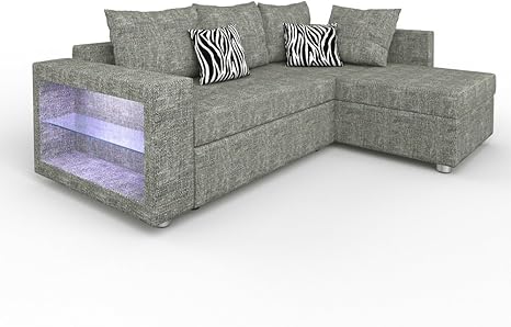 sofa eck couch led wohnlandschaft garnitur schlafsofa regal polsterecke l form struktur grau mit led amazon de kuche haushalt wohnen