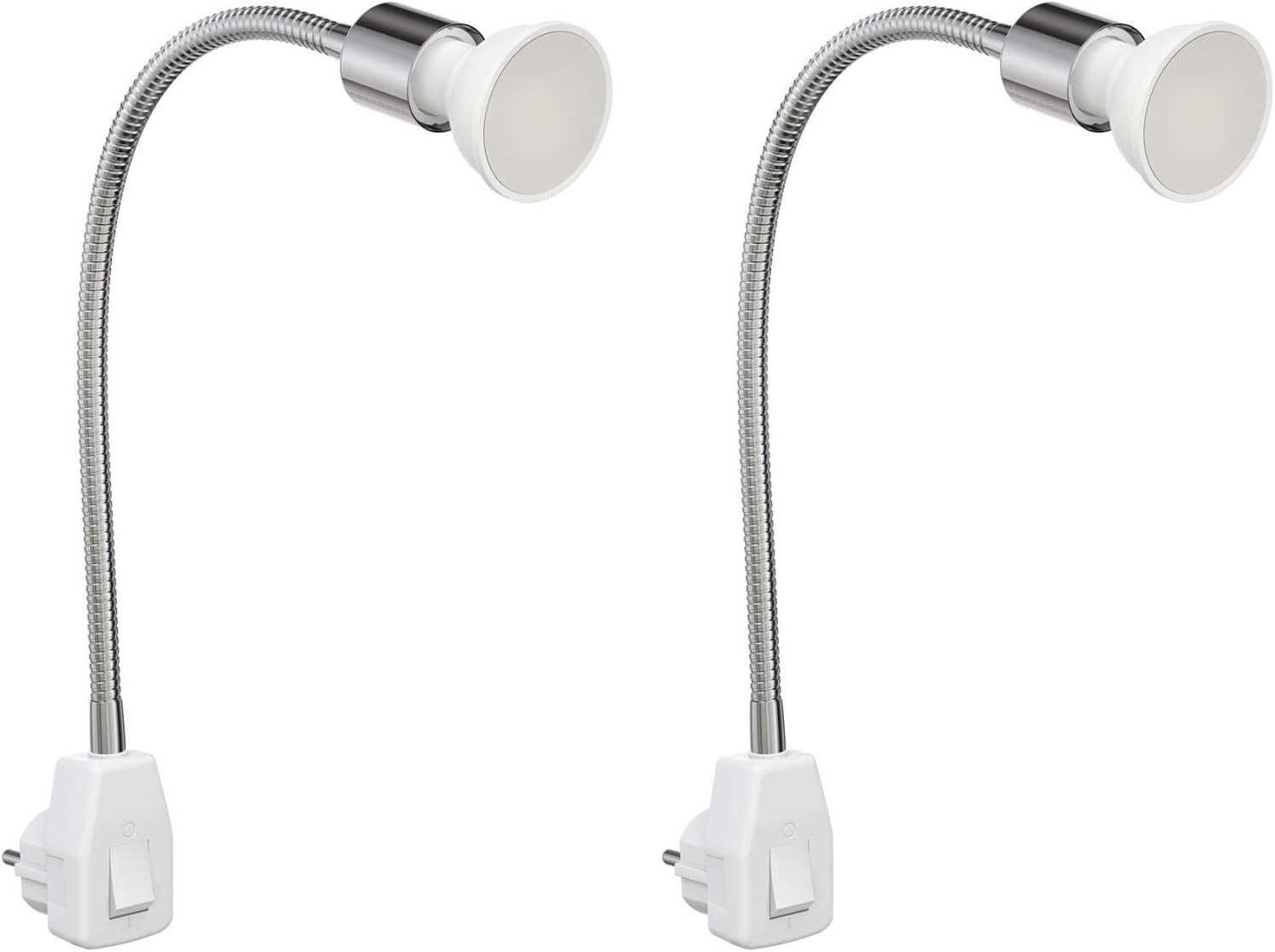 steckdosenlampe lesch leselampe schwanenhals schalter chrom inkl gu10 led lampe par16 warmweiss leuchtmittel wahlbar von ledscom de