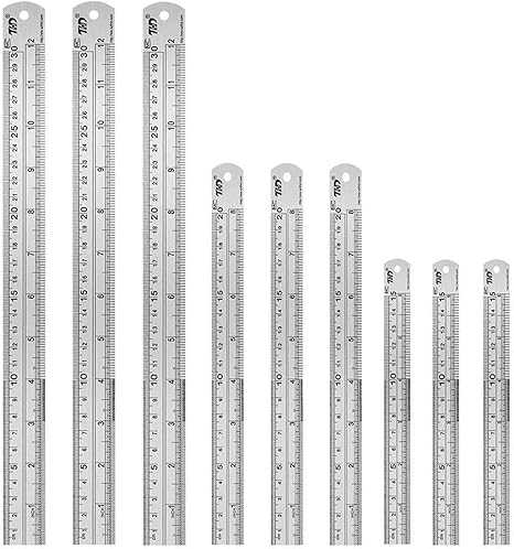 edelstahl lineal set 9pc stahlmassstab stahllineal metall metrisch gerader rand lineal 6 zoll 8 zoll 12 zoll prazision herrscher fur die technik silber amazon de gewerbe industrie wissenschaft