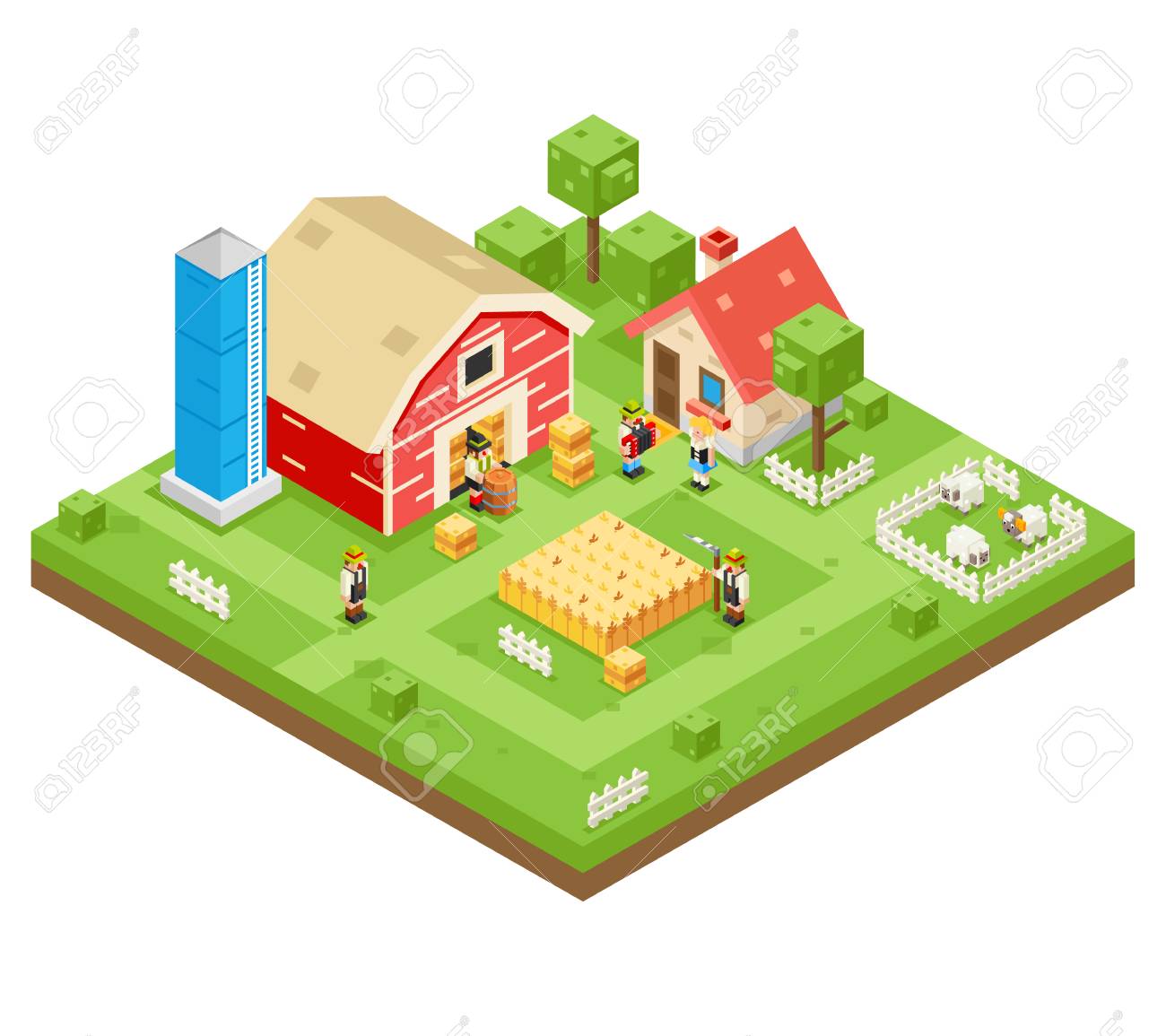 dorf landwirtschafts bauernhof landliches haus gebaude isometrische 3d lowpoly ikonen real estate garten symbol wiesen hintergrund flache design vektor illustration lizenzfrei nutzbare vektorgrafiken clip arts illustrationen image 82815252