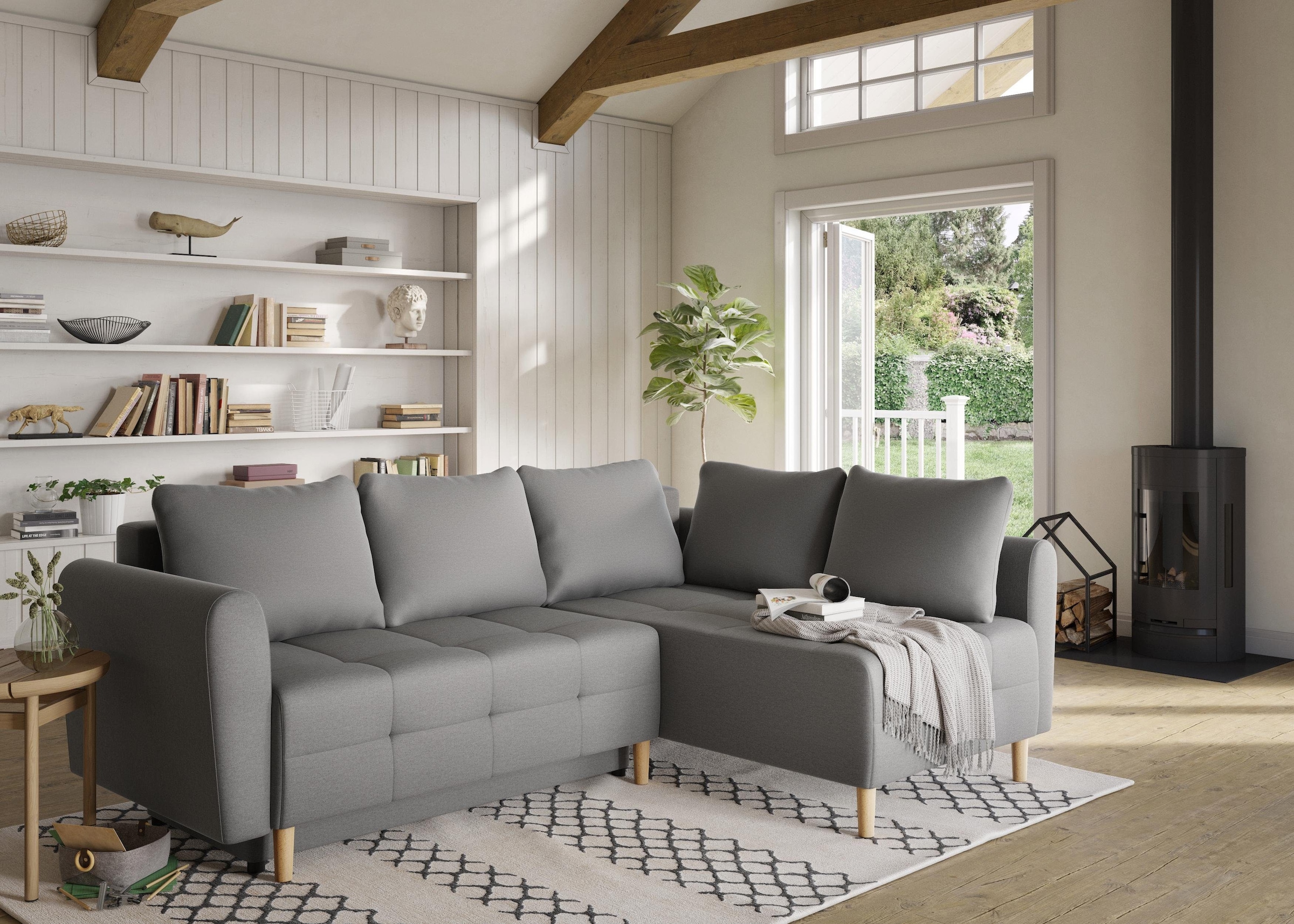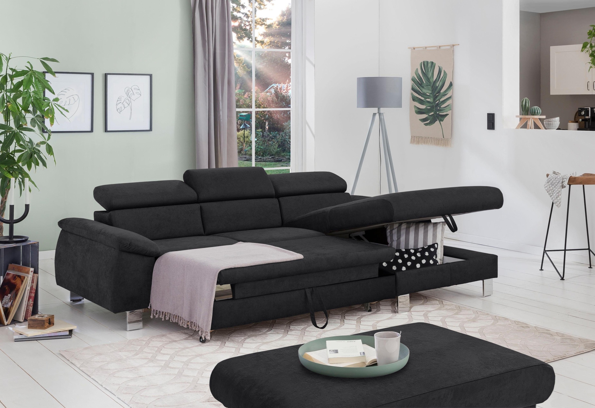 collection ab ecksofa mit bettfunktion bettkasten und regalarmteil ottomane links oder rechts montierbar wahlweise mit federkern frei im raum stellbar auf rechnung kaufen quelle de
