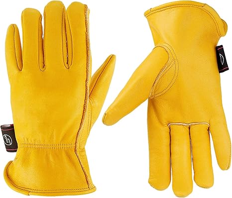 kkmoon 1 paar rindsleder arbeit handschuhe herren arbeitshandschuhe damen montagehandschuhe sicherheit schutzhandschuhe f r gartenarbeit fahrradtraining schwei arbeit maschinenmontage gelb size l amazon de baumarkt