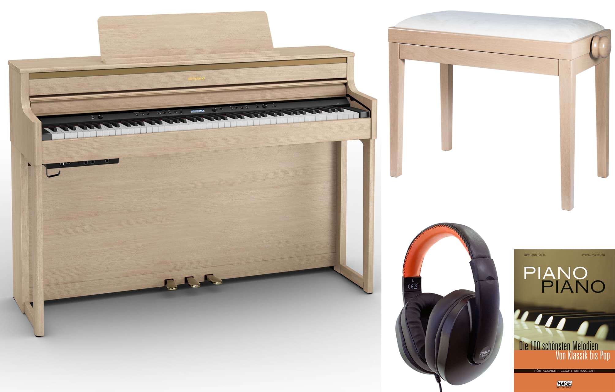 roland hp 704 la digitalpiano eiche hell sparpaket bauer music
