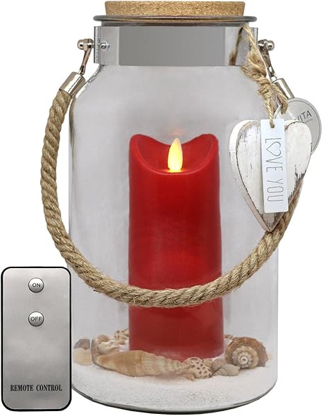 amazon de dekovita 30cm glas laterne m outdoor kerze rot u fernbedienung dekoglas geschenk liebe