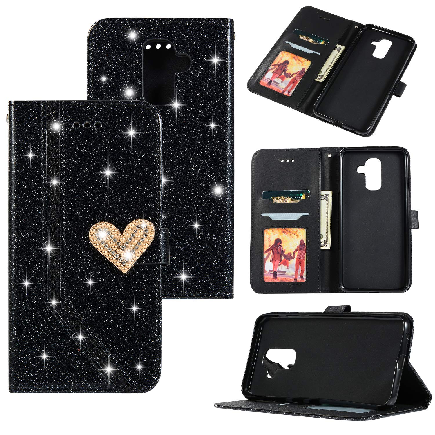 schwarz galaxy a6 2018 schutzhulle huddu diamant handyhulle compatible for samsung galaxy a6 2018 herz glitzer hulle flip case ultradunn tasche kartenfach stand brieftasche etui klapphulle madchen zubehor koffer rucksacke taschen