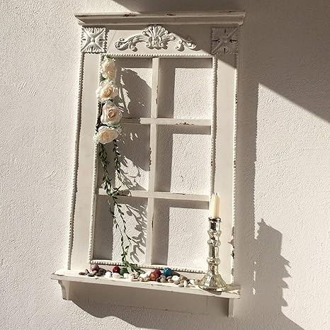 annastore dekofenster aus holz weiss vintage h 93 cm deko fenster dekofenster mit sprossen holz vintage amazon de kuche haushalt wohnen