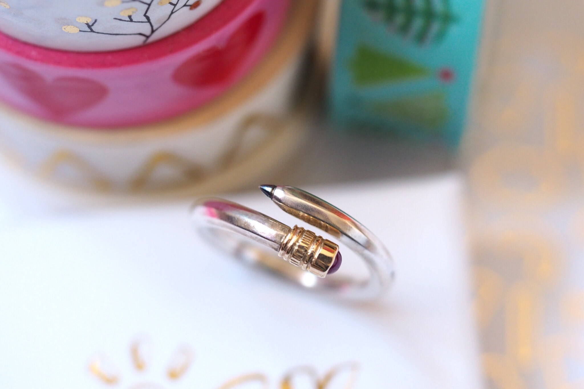 bleistiftring handgefertigt in silber gold und rubin etsy