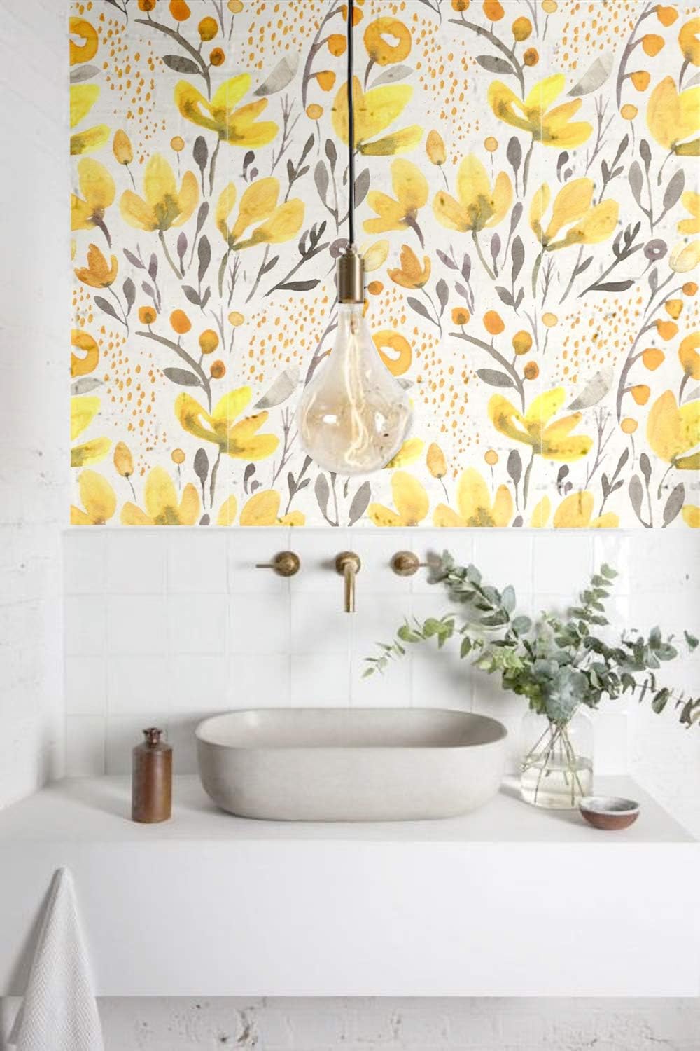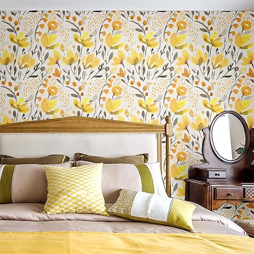 blooming wall ps032 selbstklebende tapete selbstklebend wasserfarben nahtlos gelb frische blumen kapok vorgekleistert amazon de baumarkt