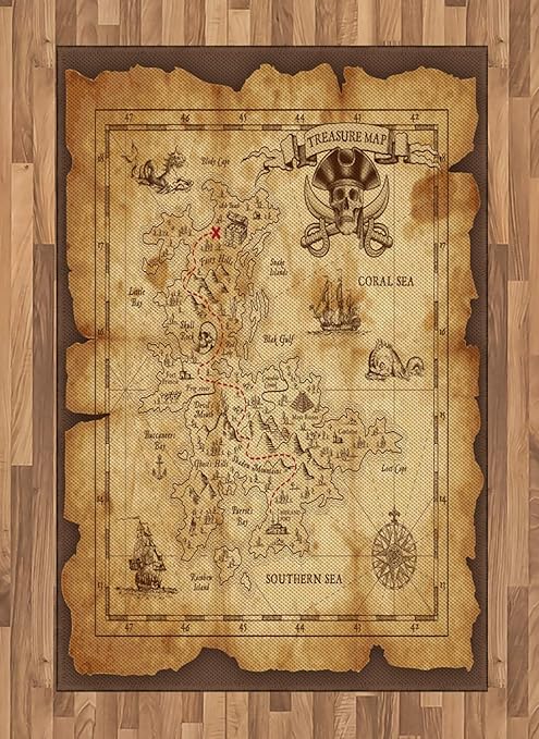 abakuhaus insel karte teppich altes papier schatzkarte deko teppich digitaler druck deren farbe nicht abfallt langfristig 120 x 180 cm beige braun amazon de kuche haushalt wohnen