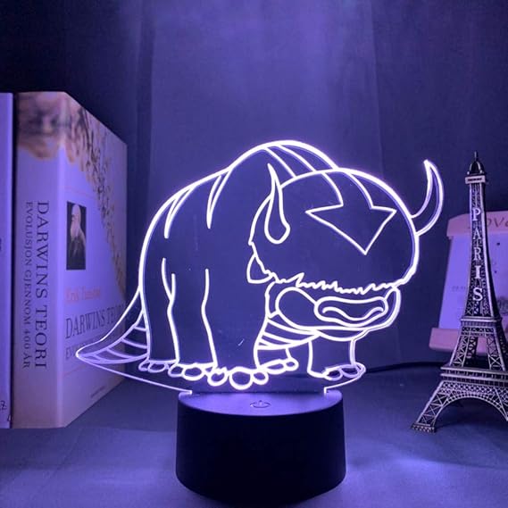 acryl 3d lampe avatar das letzte airbender nachtlicht fur kinder kinderzimmer dekor die legende von aang appa figur tisch nachtlicht 16 farben mit fernbedienung amazon de beleuchtung