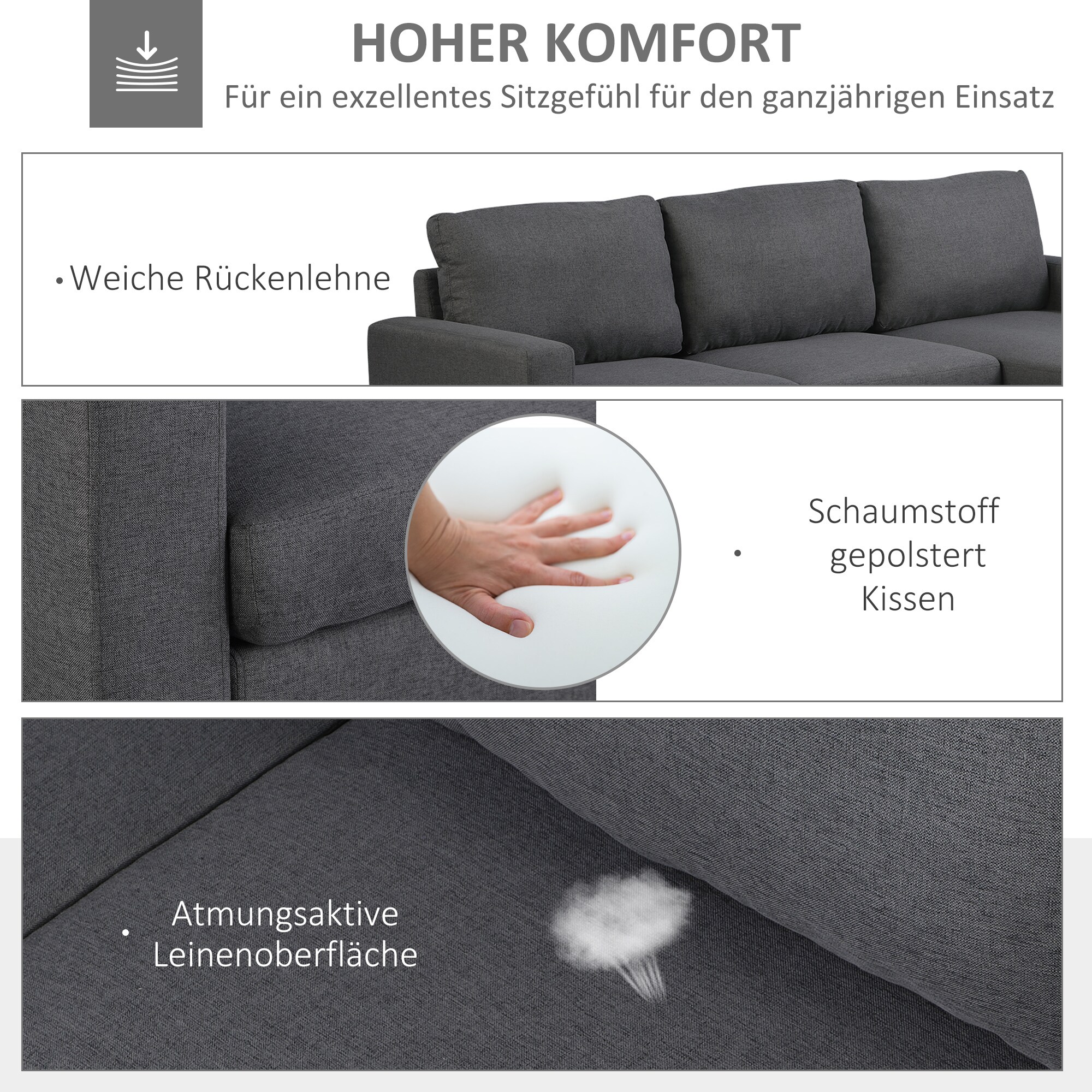 homcom couchgarnitur in l form grau 187 x 126 x 79 cm lxbxh ecksofa 3 sitzer sofa couch polstermobel wohnzimmer online kaufen bei netto